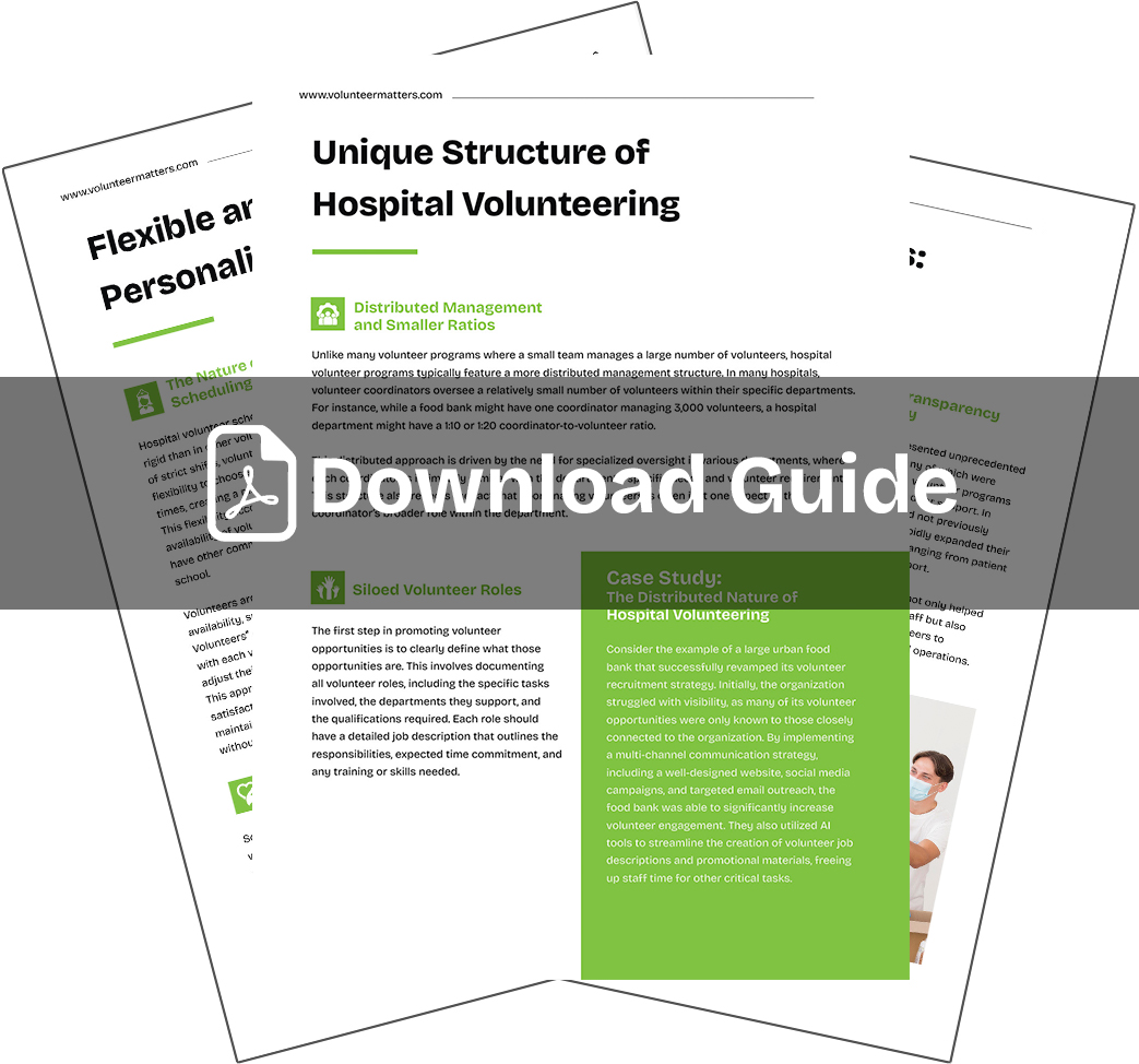 For those ready to refine their practices and ensure a high standard of volunteer management, download our comprehensive guide designed to equip you with the knowledge and tools to successfully navigate the complexities of hospital volunteering.